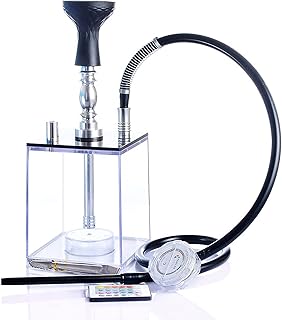 水ギセルセット、ホース水ギセルシーシャコンプリートセット、熱管理システムとLEDライトリモコン付きマイクロ現代キューブ水ギセル