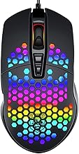 ゲーミングマウス 有線 軽量 光学式 RGB 6色LEDライトマクロ登録 プログラマブルドライバー 6400DPI 6鍵 6段調節可能 ハニカムデザイン 5 PC PS4 スイッチ対応 (ブラック)