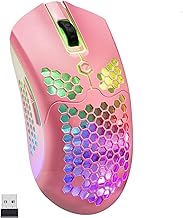 ゲーミングマウス 65g 軽量マウス光学式 RGB 26色LEDライト usb有線 プログラマブルドライバー 12000DPI 7鍵 6段調節可能 ハニカムデザイン Pixart Paw3325 PC PS4 スイッチ対応(ピンク)